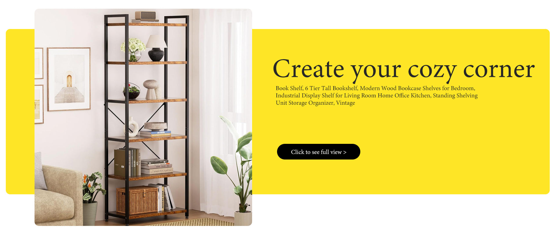 Book Shelf, 6 Tier Tall Bookshelf, Modern Wood Bookcase Shelves for Bedroom, Industrial Display Shelf for Living Room Home Office Kitchen, Standing Shelving Unit Storage Organizer, Black