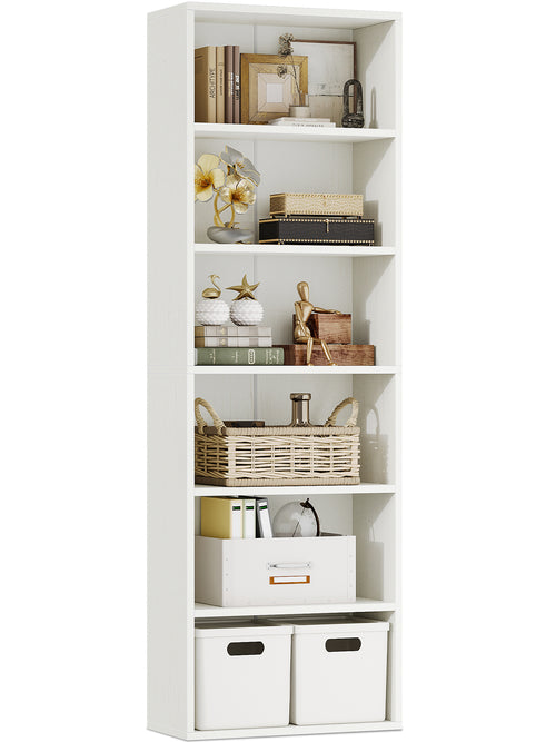 Book Shelf, 6 Tier Tall Bookshelf, Modern Wood Bookcase Shelves for Bedroom, Industrial Display Shelf for Living Room Home Office Kitchen, Standing Shelving Unit Storage Organizer, White